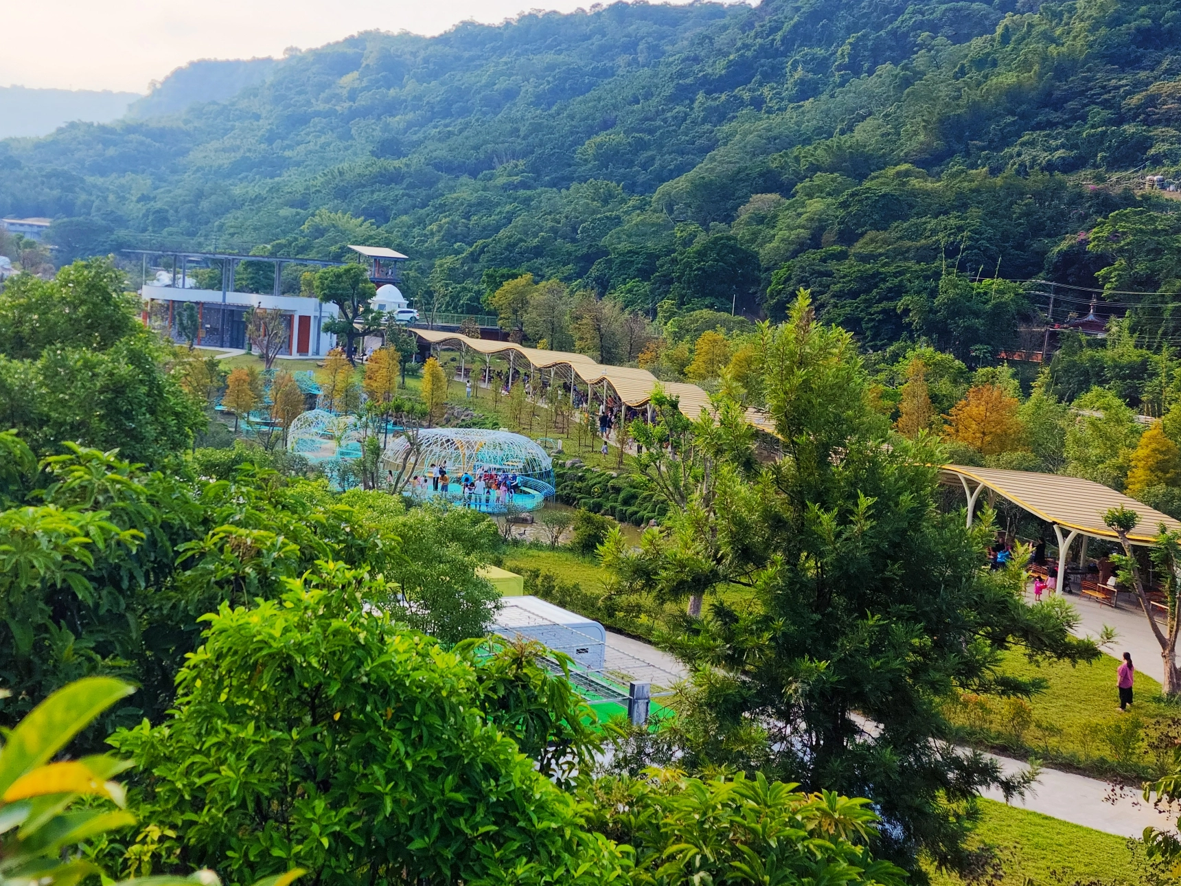 在打造園區的前期時,亮山川仍是一片未開發,無接電、無自來水的素地,有溪流經過,有台灣藍鵲棲息,偶有山羌或黃嘴角鴞藏匿於樹林間;園區開發初期,劉丁讚老師與其團隊接受亮山川老闆的委託,為園區打造極具景觀與藝術結合的自然生態步道,有別於一般步道,劉丁讚老師利用鋼筋的朔性,讓走在步道上的人們可以更輕鬆,且不易滑倒,更在鋼筋步道塗上了猶如彩虹般的繽紛色彩,使得山林步道更有讓人驚豔的藝術感受。當初,施作時全憑他當下對地景的敏銳與洞察,遇到樹,則鋼筋蔓延而上成為樹屋,遇奇形怪石,則使鋼筋依其輪廓彎曲而建,保留原始樣貌而不隨便挪移。地勢坡度有變化時,則將鋼筋築成樓梯領人向上登高,沿路又延伸成桌椅,讓人能坐下歇腳;若有溪水小魚,則步道引至岸邊,讓人可順勢蹲下用雙掌抔水,感受山泉沁涼、近距離觀察山澗中的生物小宇宙。
