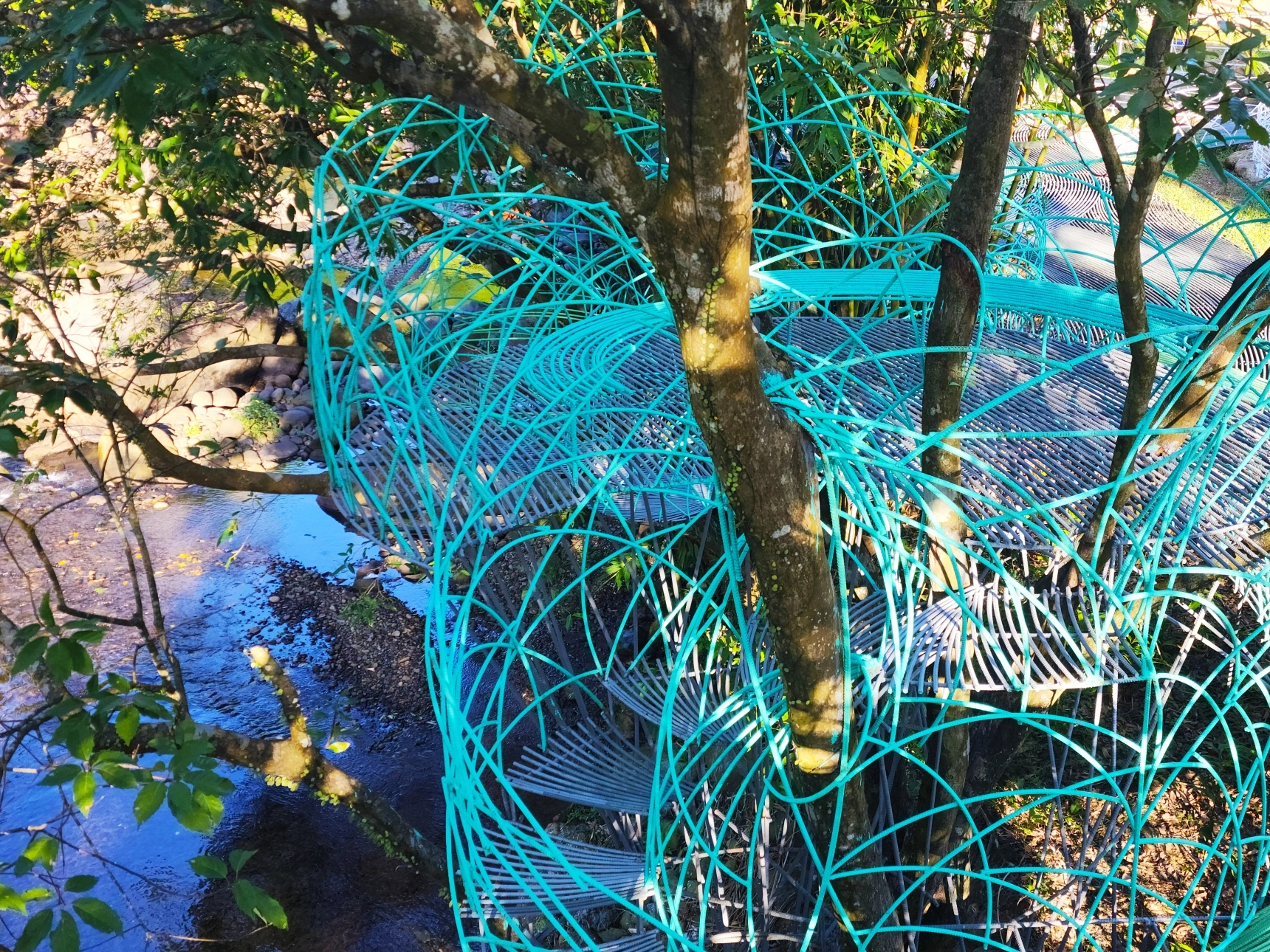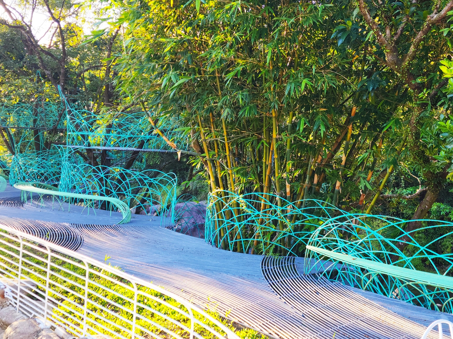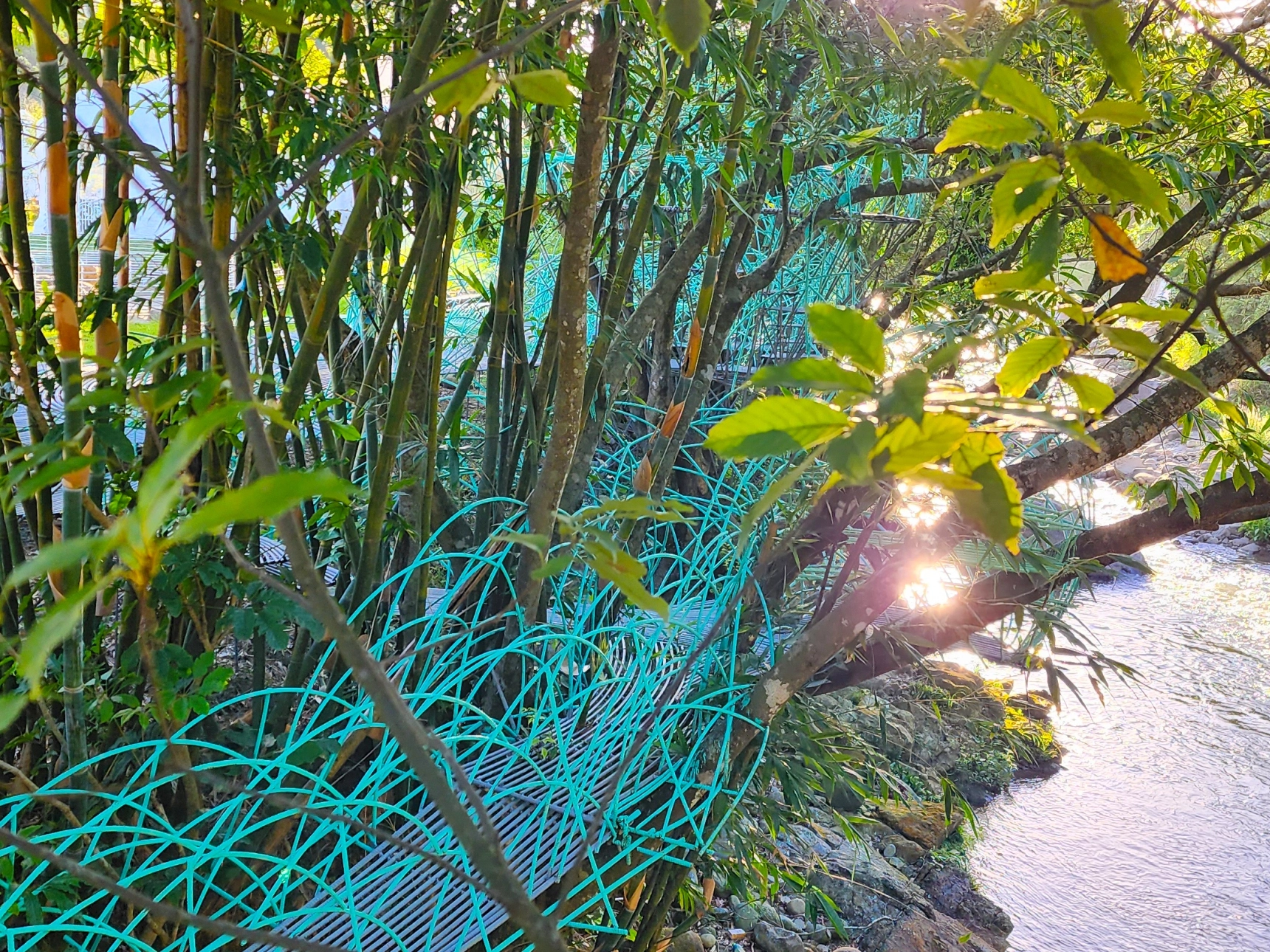 鋼朔大師劉丁讚在亮山川與瑪鋉溪旁建構了〝川流道〞親水步道,透過鋼筋的韌性,讓人走在猶如天空步道的開闊,更可以清楚看到瑪鋉溪原始的樣貌;在高低起伏的步道中,溪流與天空更顯示出更多的自然風情,當你來到亮山川時,記得來到川流道走走,看看瑪鋉溪的美,聽聽野溪才有的澎湃水聲!