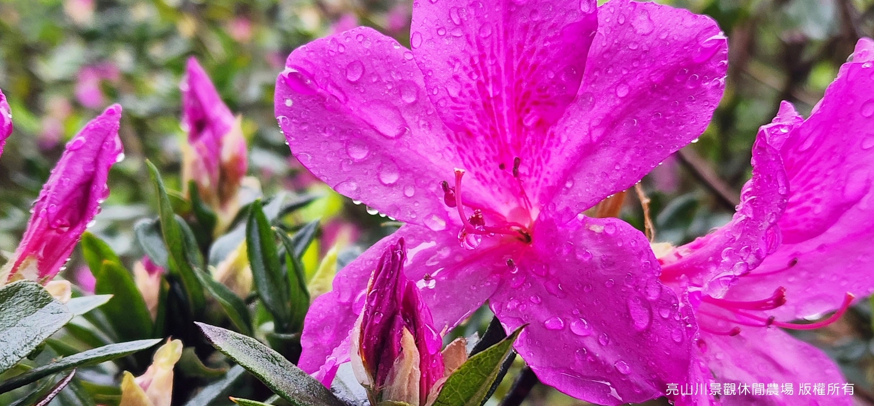 杜鵑花點綴了亮山川的山坡與庭園,讓人們走在花間小徑,看著滿開的花朵,彷彿所有煩憂都被春風帶走,只剩下寧靜與喜悅。現在就來亮山川感受吧!