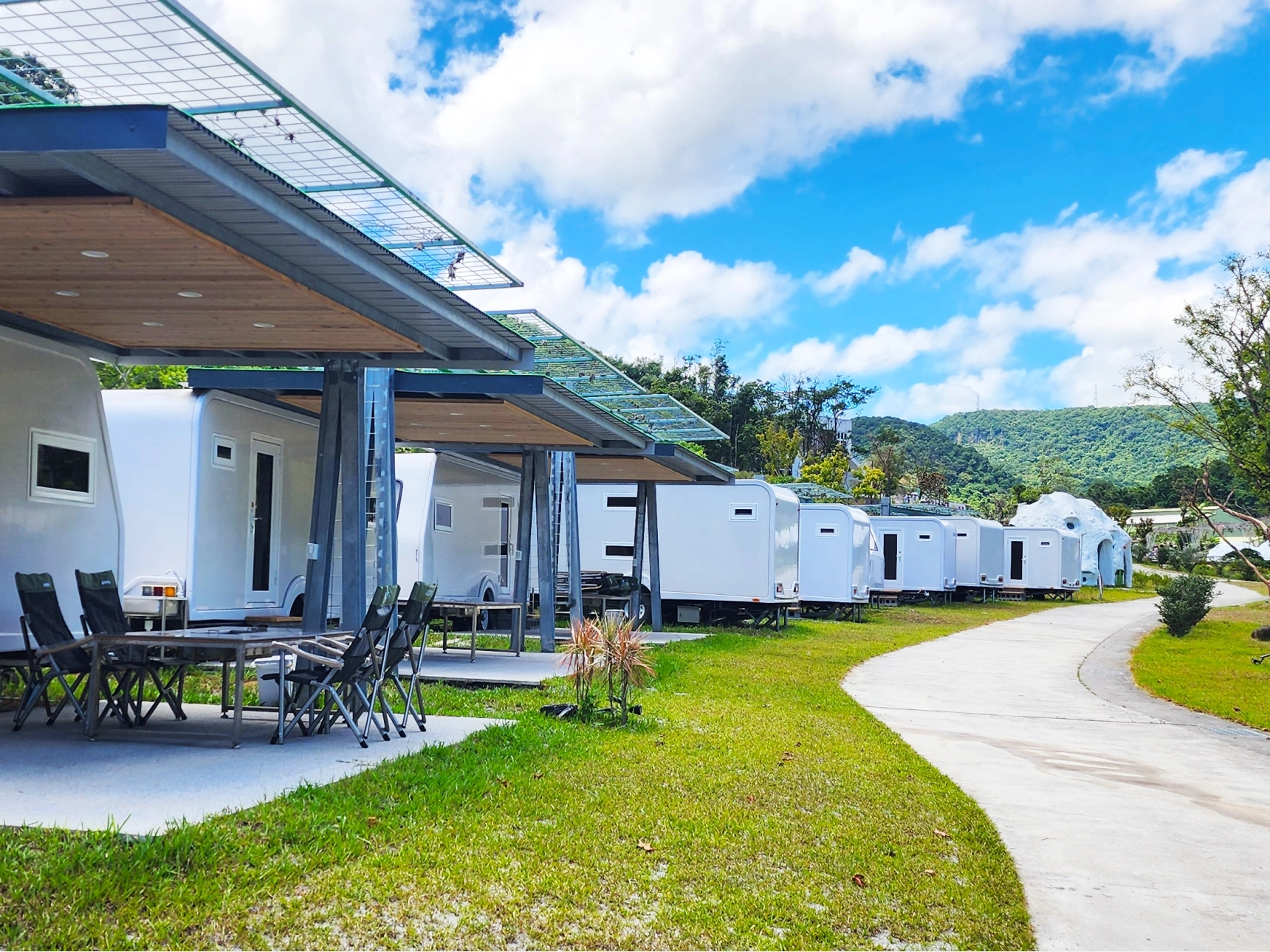 如果你想暫時遠離科技的干擾與城市的喧囂,只讓夜空的繁星陪伴自己,聆聽山林間的蟲鳴與微風的低語入眠,那麼這裡將會是你理想的度假天堂。無論是臨時起意的小旅行,還是精心規劃的假期,帶上行李,就能輕鬆出發。你不必長途跋涉,就能輕鬆抵達一處被青山與自然環抱的世外桃源,享受隱身山林中的純淨生態體驗。園區內共有19台全新又舒適的露營車,每一台都配備專屬獨立乾濕分離衛浴空間、柔軟床寢與全天候冷熱水供應,讓你在大自然懷抱中依然能擁有如家一般的便利與溫暖。白天,你可以沿著山林步道或溪畔散步,讓心靈放鬆、釋放壓力,也能陪孩子到戲水池盡情玩水,享受親子共樂的美好時光。午後,坐下來品嚐一杯香氣濃郁的下午茶,感受陽光灑落林間的靜謐。夜晚時分,還能與家人或朋友圍坐在星空下,享用豐盛的海鮮火鍋或BBQ燒烤盛宴。隔天早晨,迎著清新的山風,再品嚐健康滿點的西式早餐,為旅程畫下完美句點。這是最適合親子同遊、家庭出遊與情侶放鬆的豪華露營體驗,讓你在大自然的懷抱中重新找回生活的節奏與平靜。